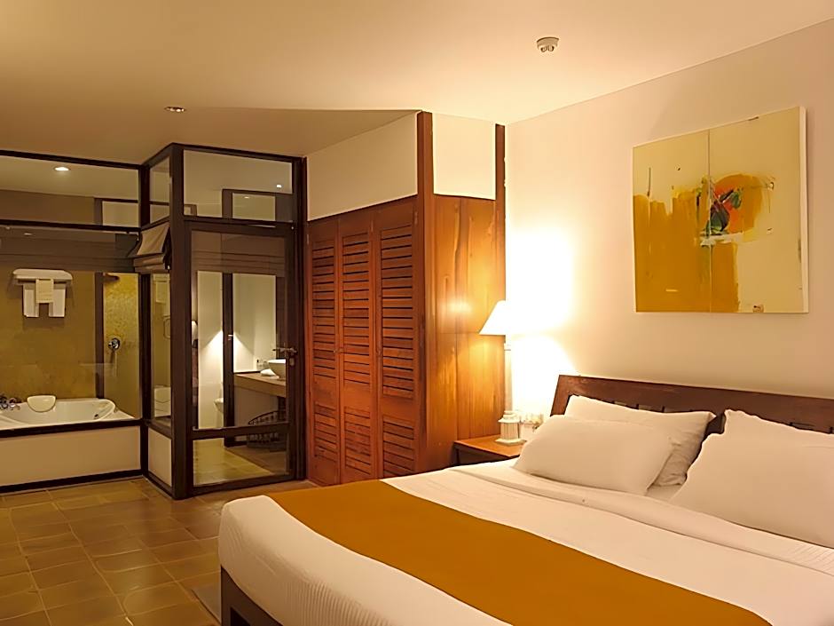 Spacious suite features a private courtyard, living area and bathroom with rainshower and spa bath.